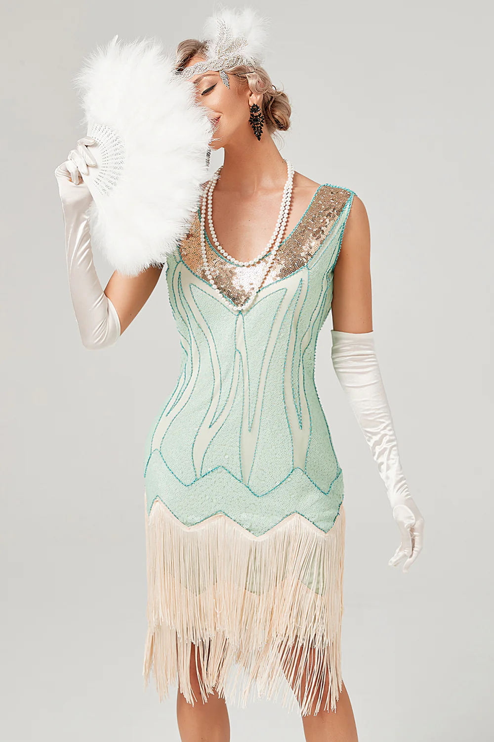 Pailletten Groene Korte Jaren 1920 Party Dress